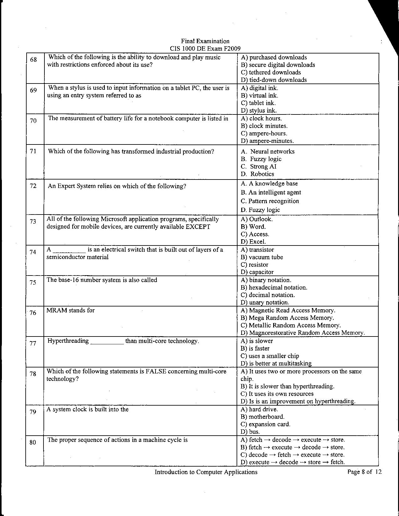 Course Notes & Past Exams