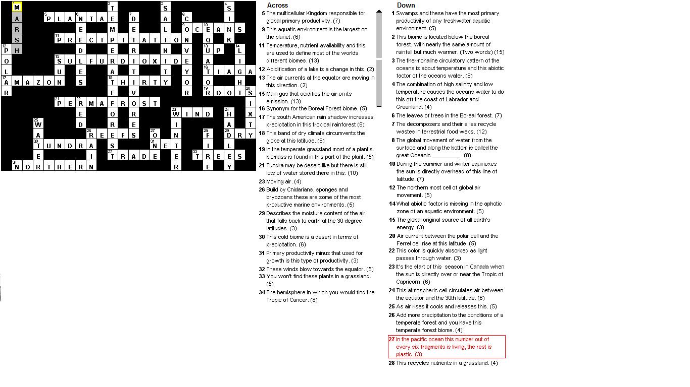 Crossword With Answers for Ecology and the Biosphere Unit - BIO1130