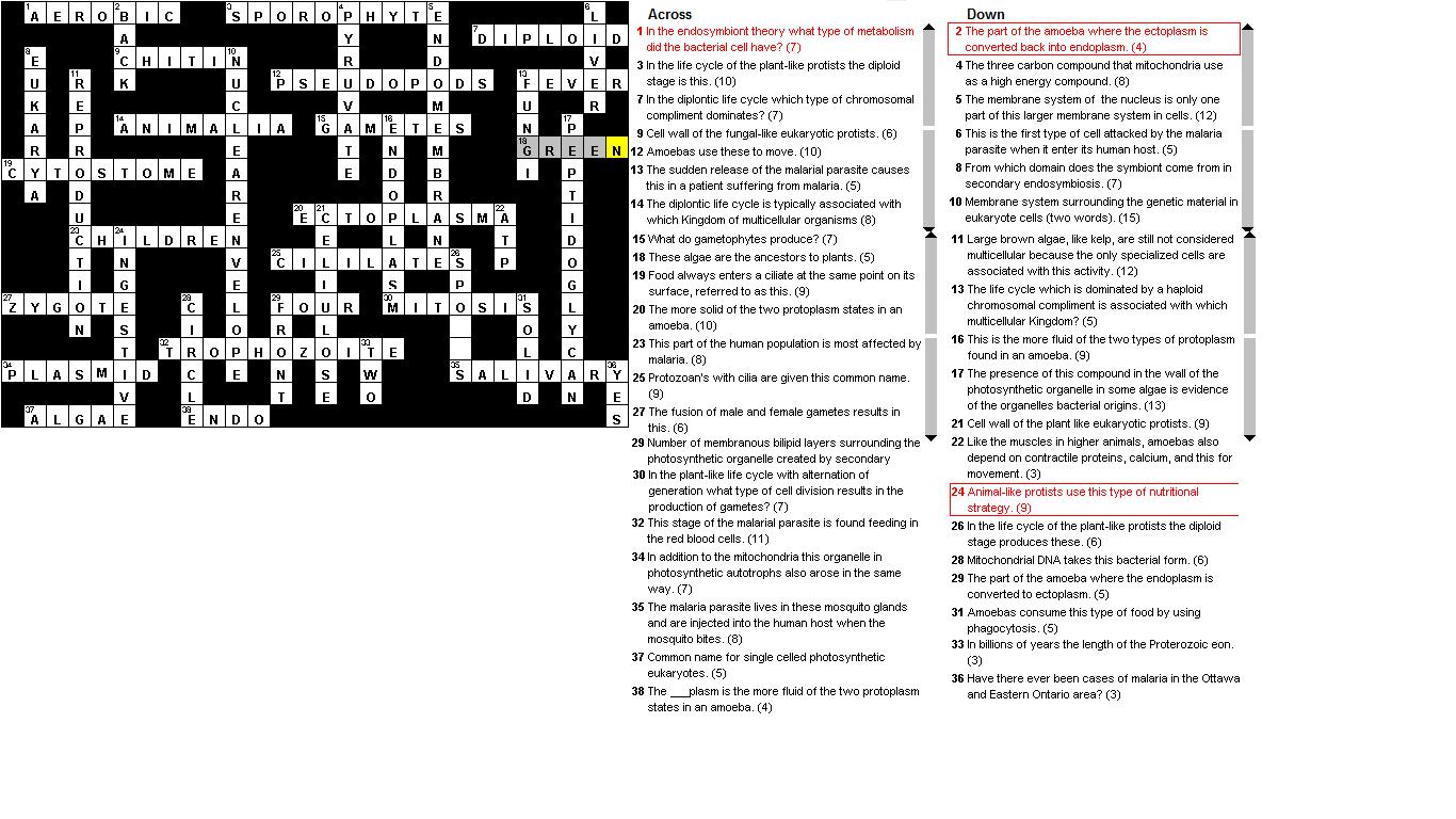Crossword With Answers for Proterozoic Unit - BIO1130