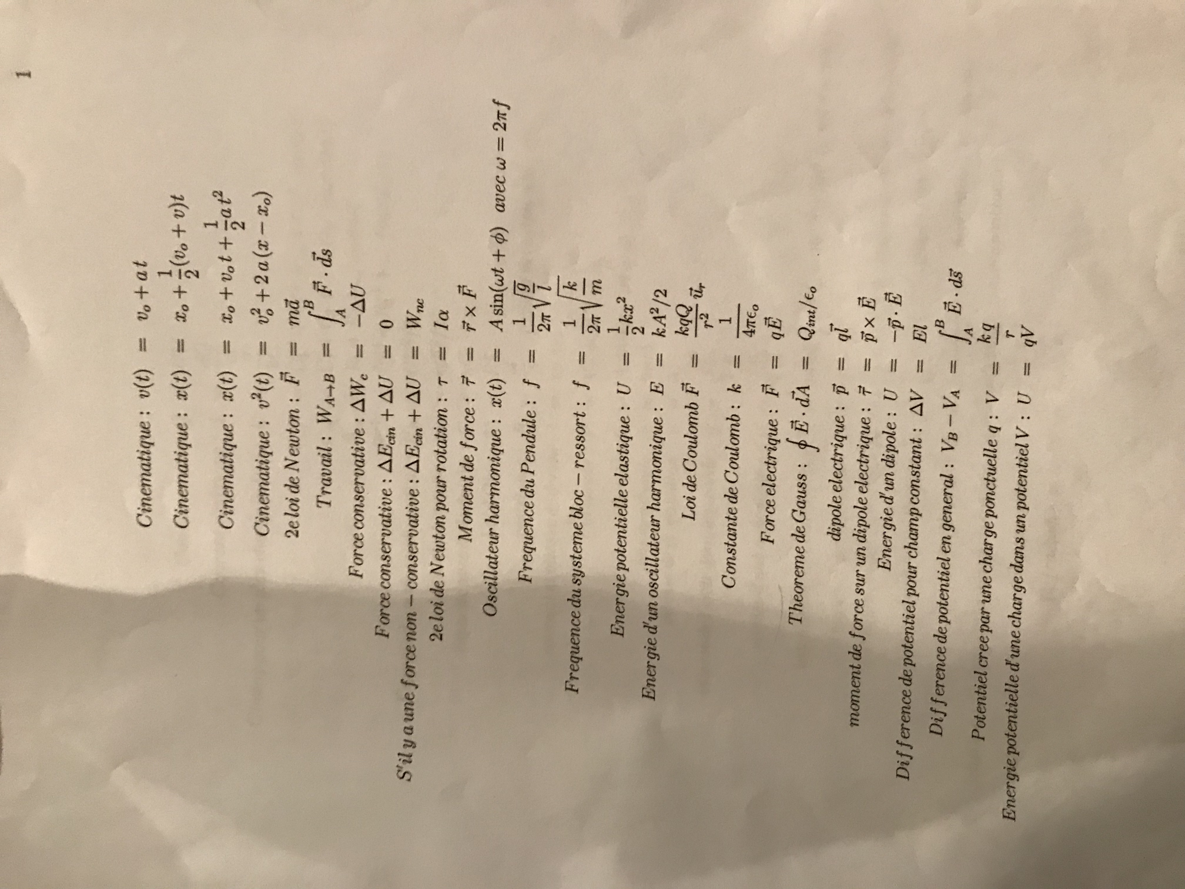 PHY 1722 - Formules