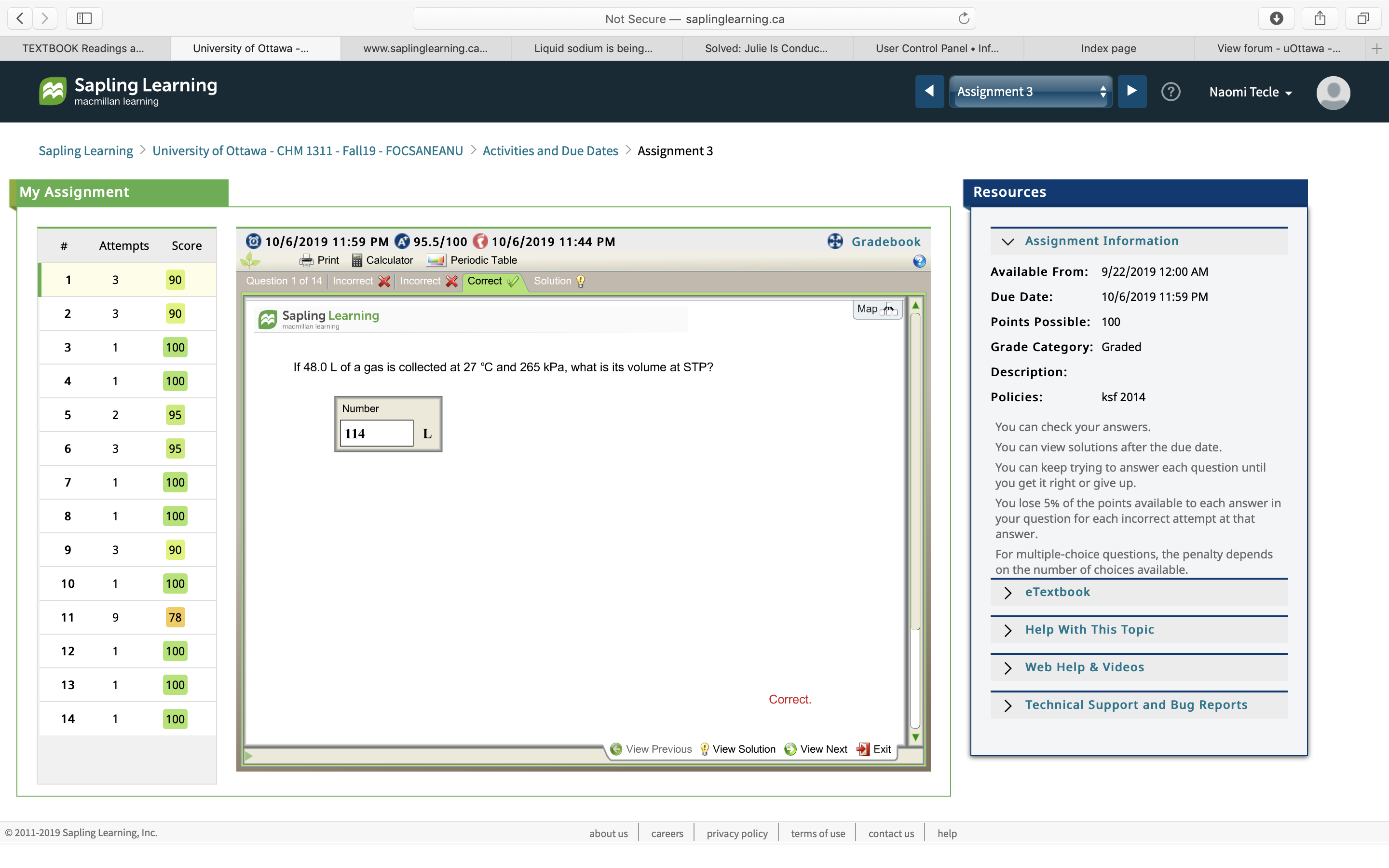 CHM 1311 sapling assignment #3