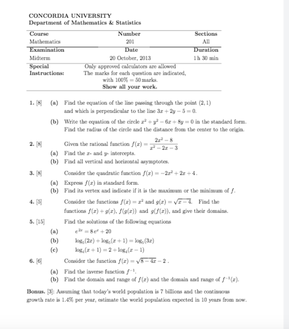 MATH 201 - MIDTERM 2013