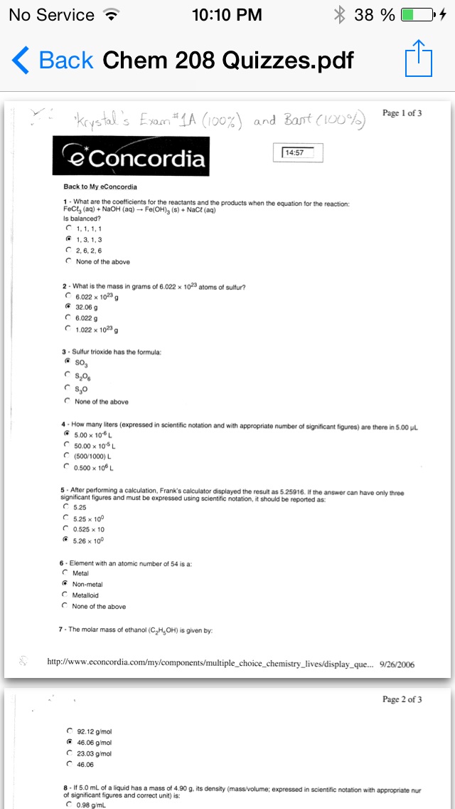 Chem 208 quiz one