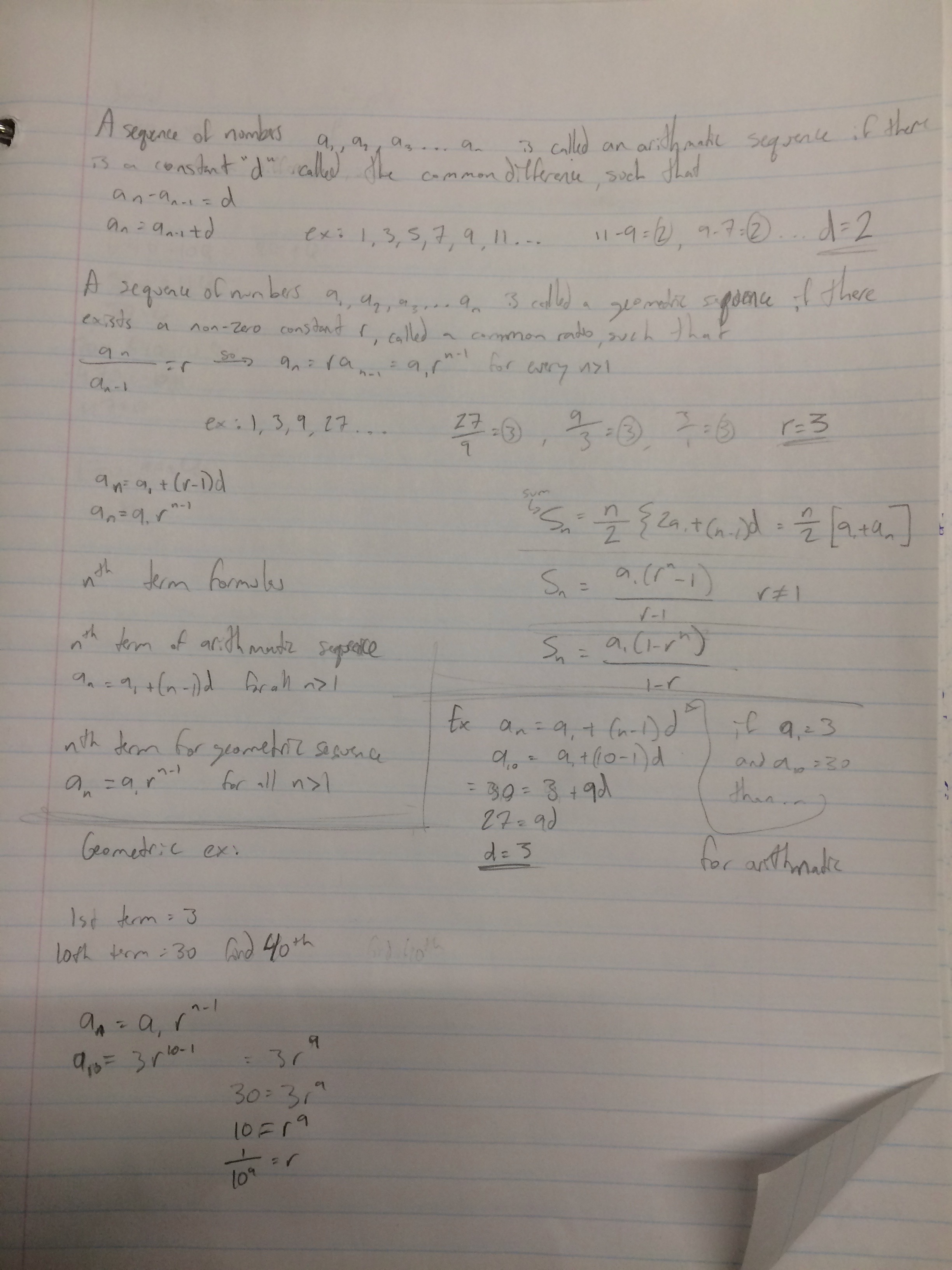 geometric series notes and formula