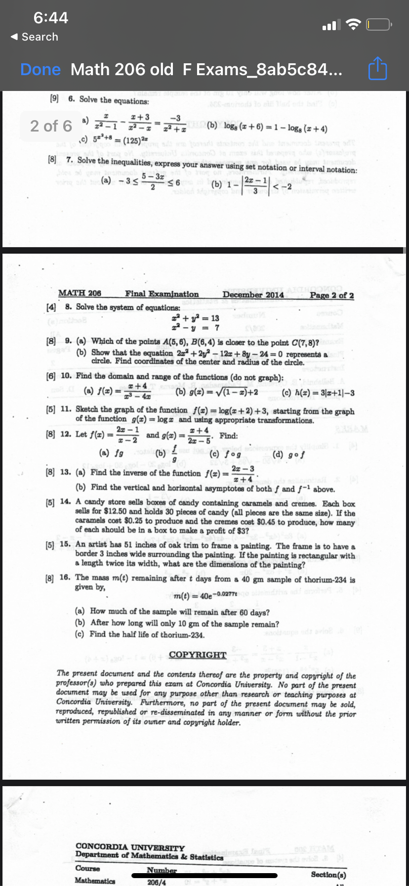 Math 206 past exam