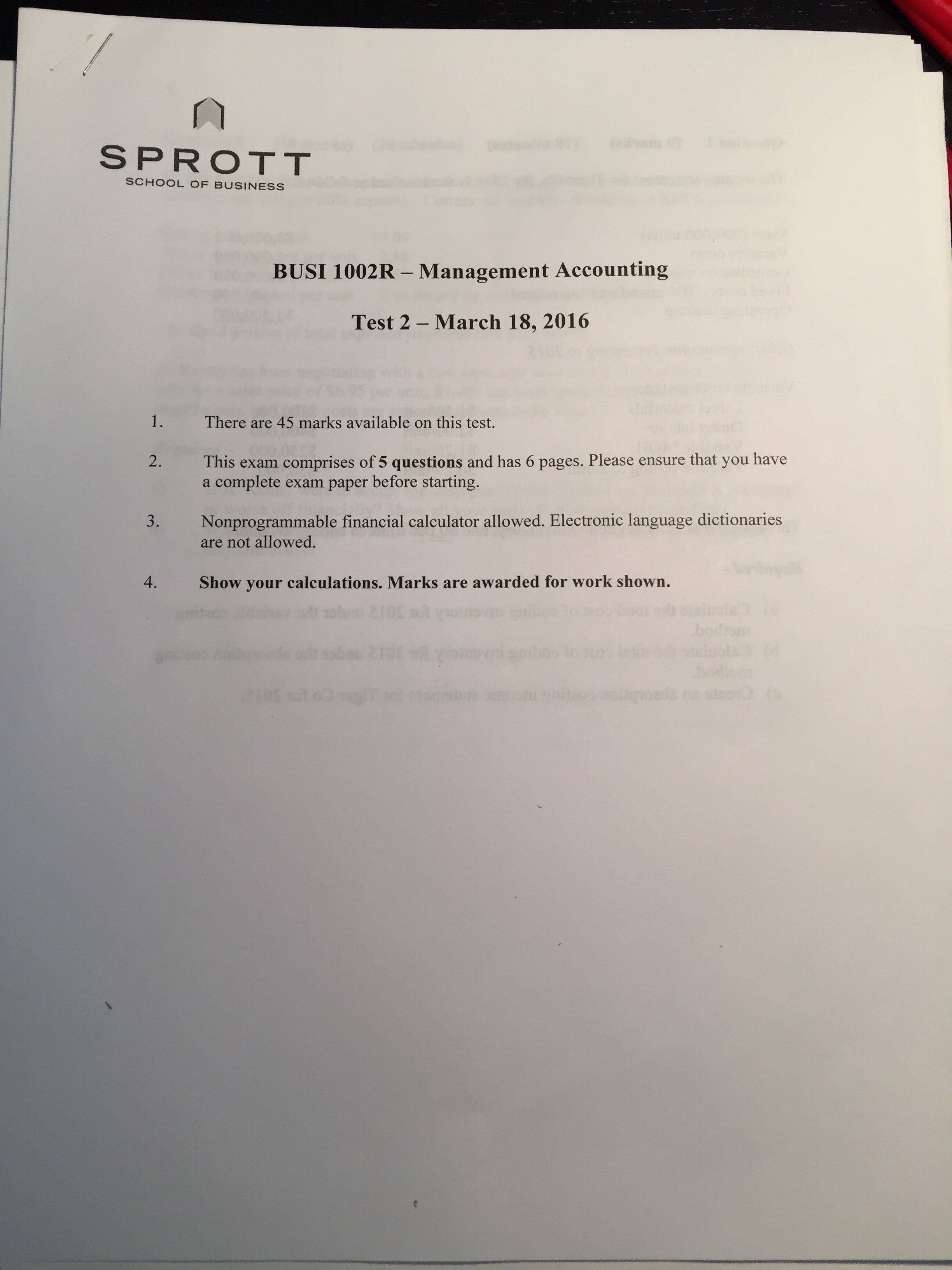 BUSI1002 - Managerial Accounting Midterm 2
