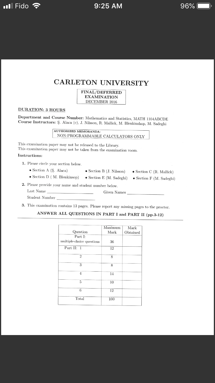 Math1104 past exam