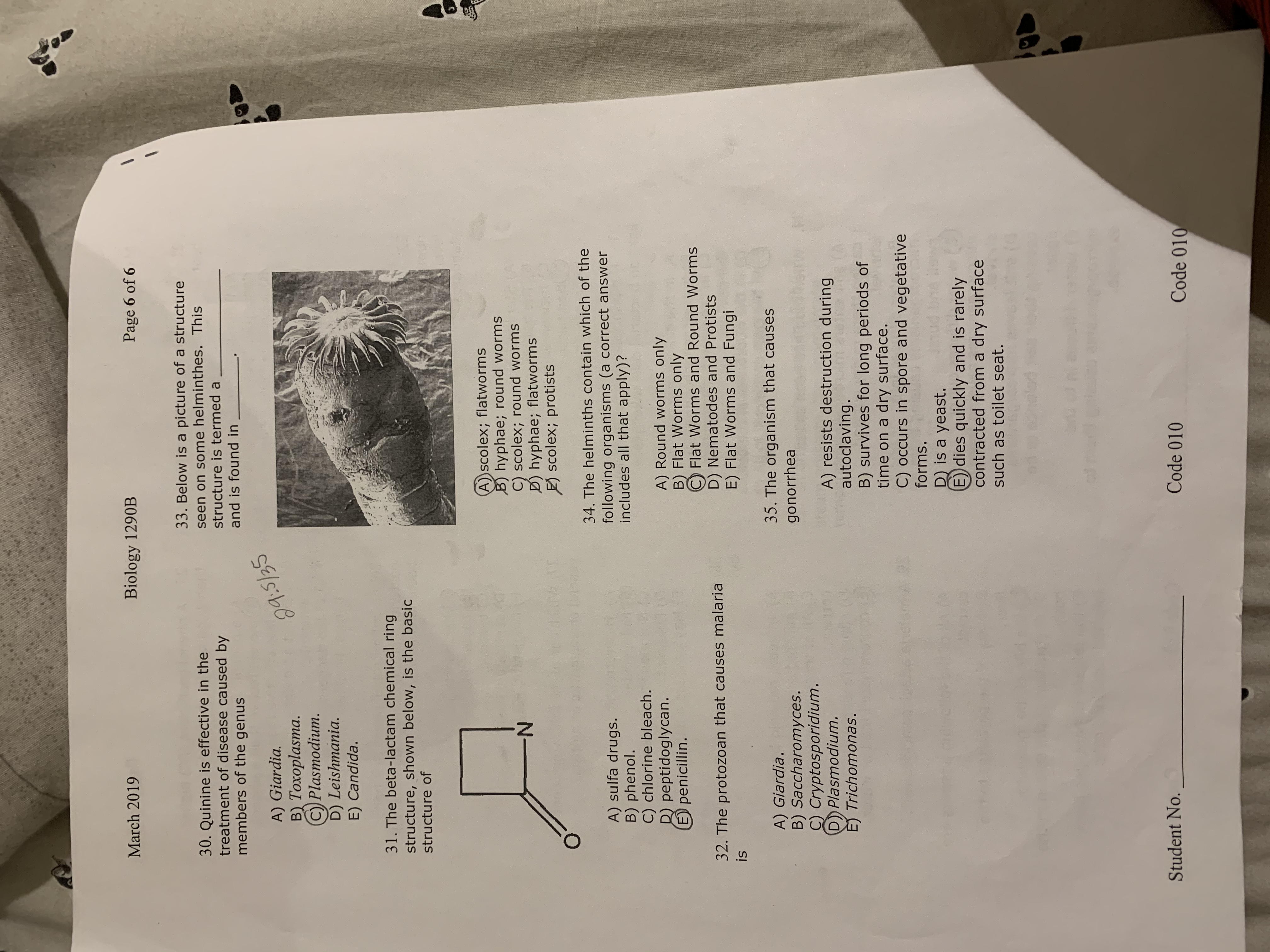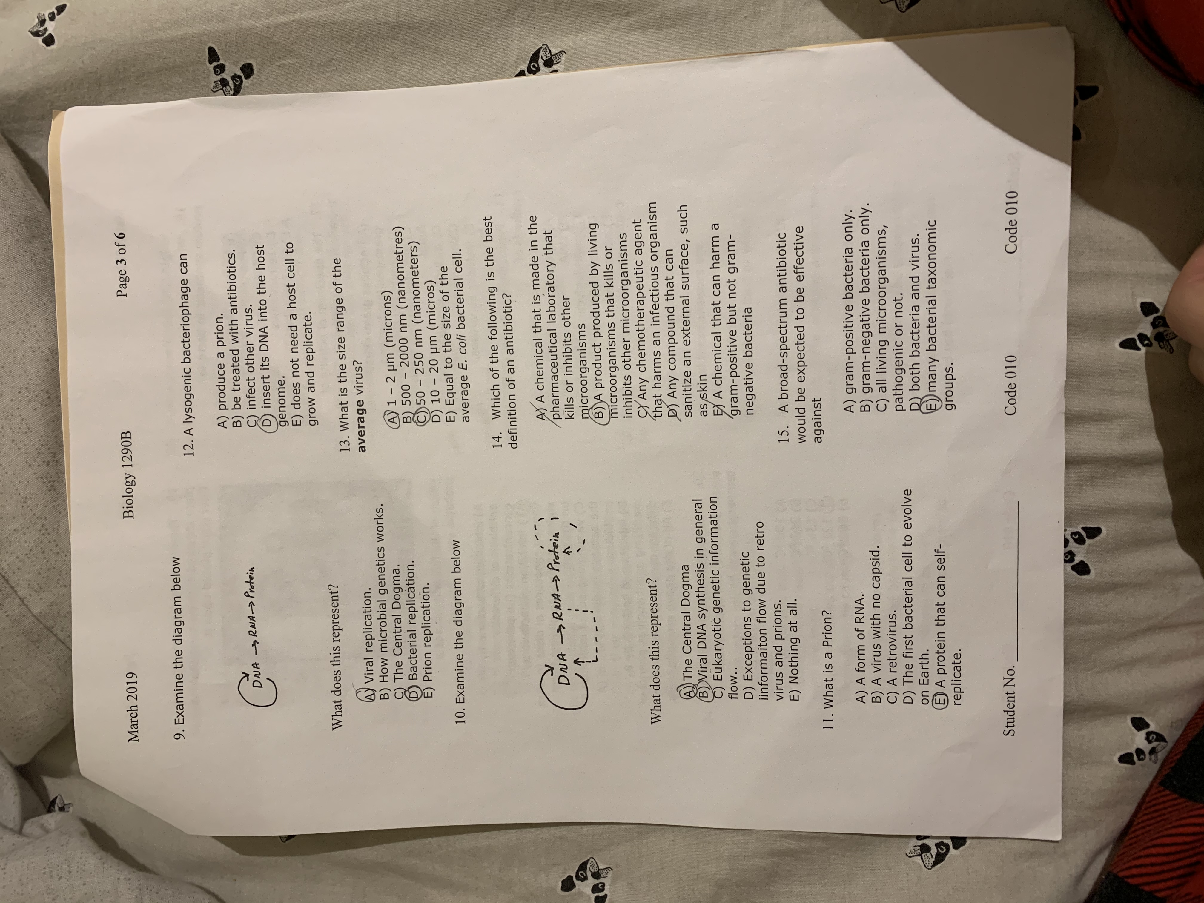 Biology 1290 midterm exam March 2019 Richard Gardiner