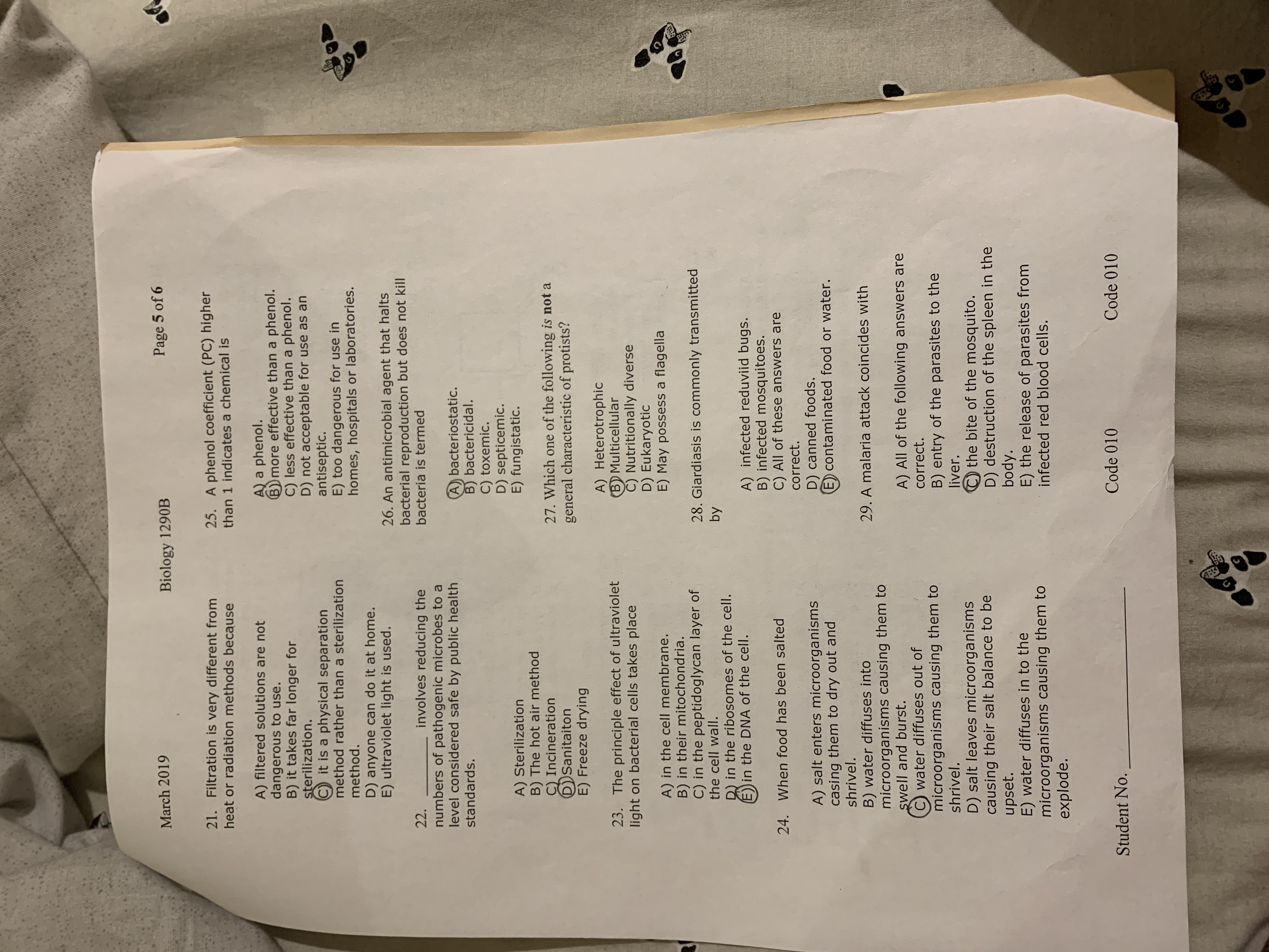 Midterm Biology Exam 1290