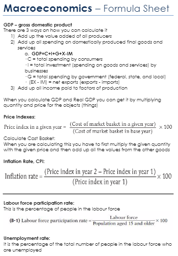Formula Sheet- ECO 1104