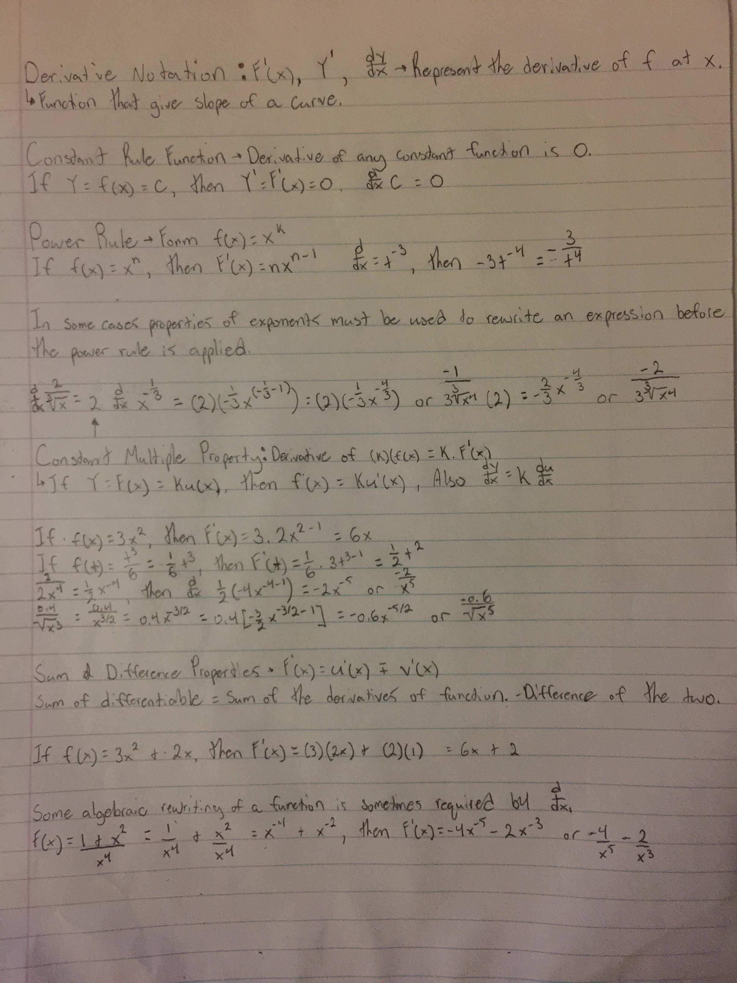 Math 209 - General Derivative Rules