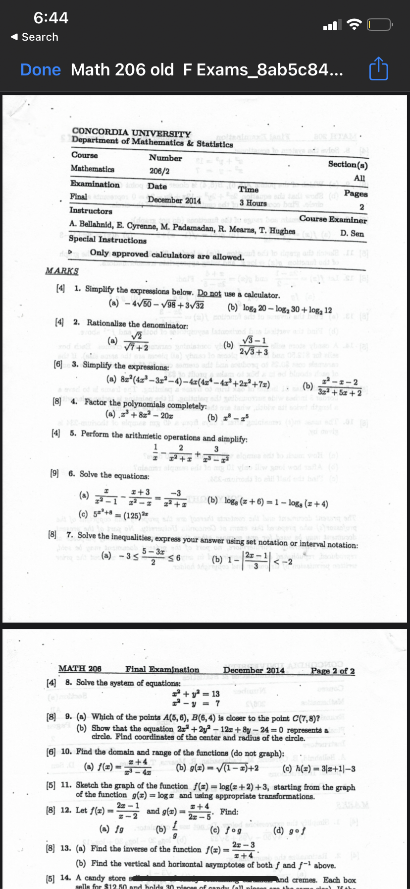 Math 206 past exam