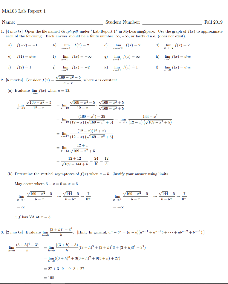 MA103 - Lab 1 Solutions
