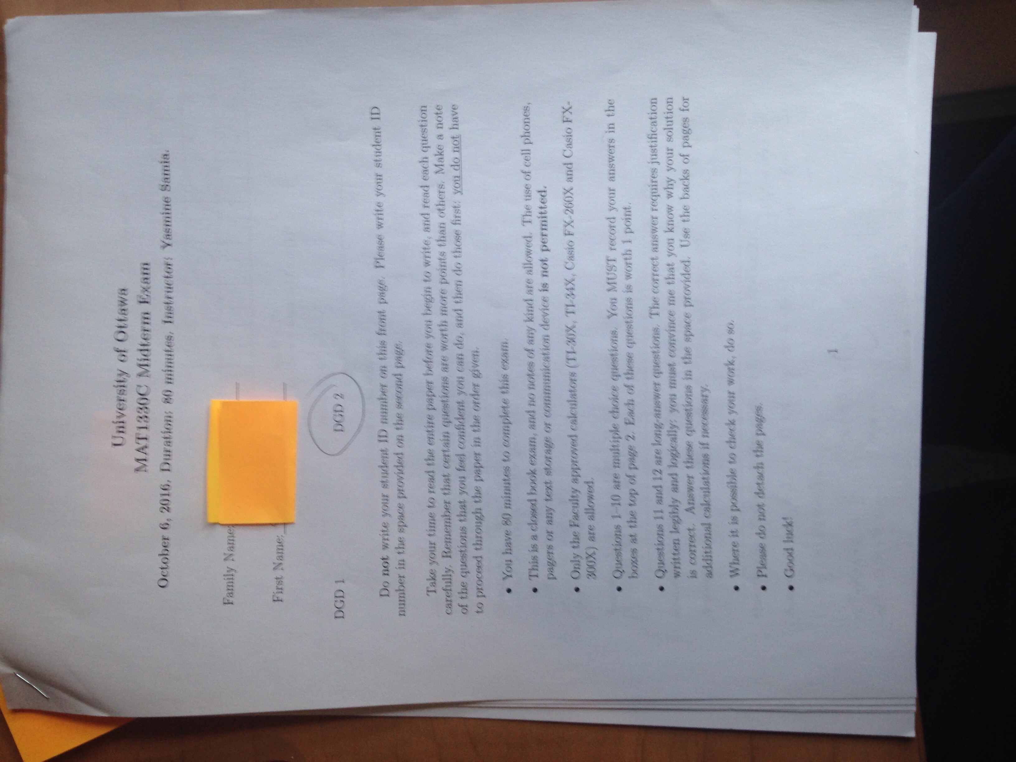 midterm 1 for math 1330, semester 1 2016