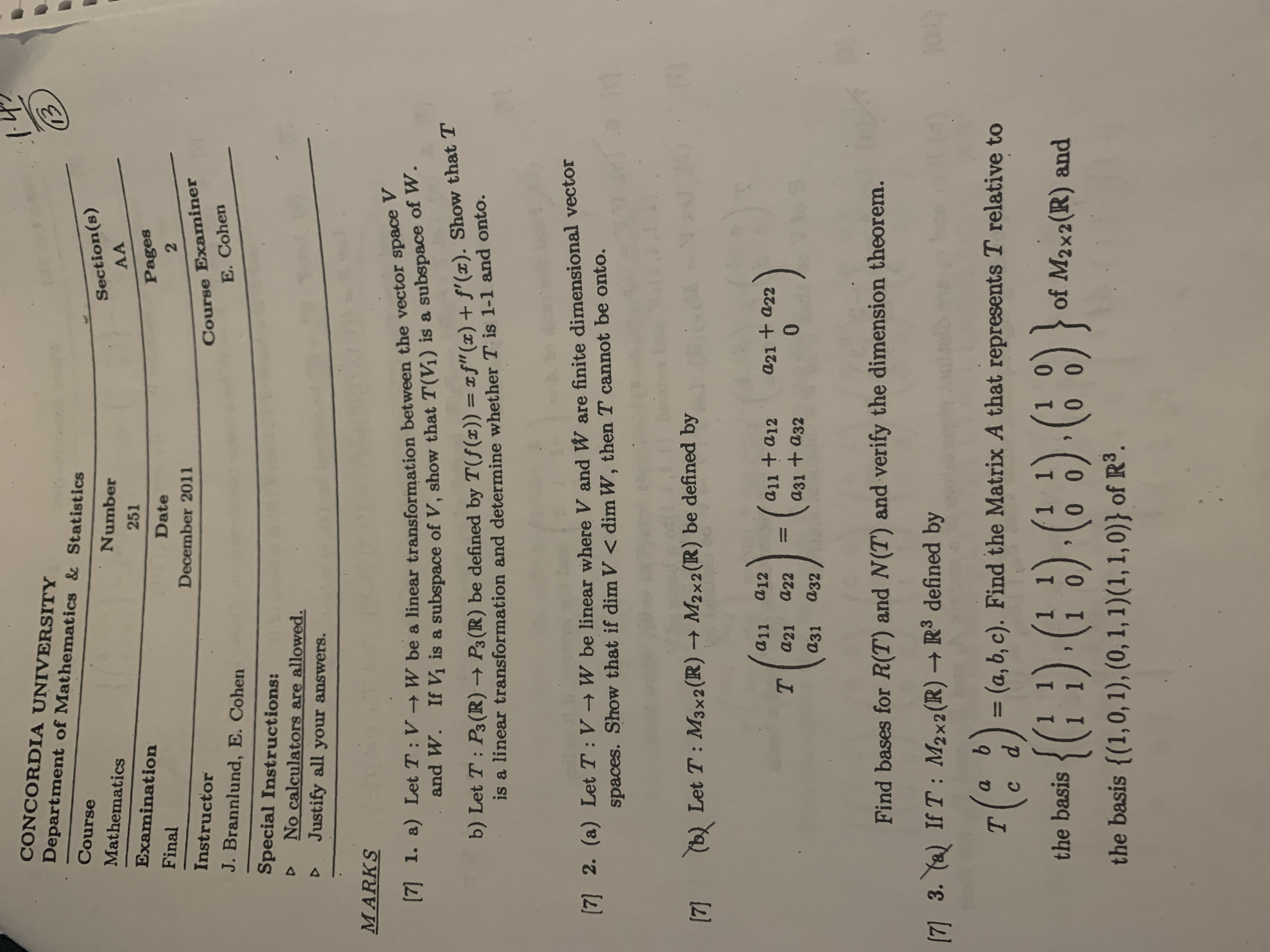 MATH 251 concordia 2011 december